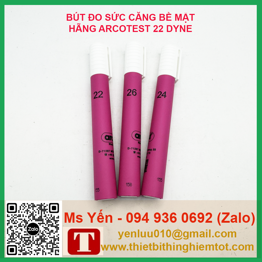 – Bút được sản xuất bởi hãng Arcotest của Đức và có thang đo rộng từ 22mN/m tới 60mN/m