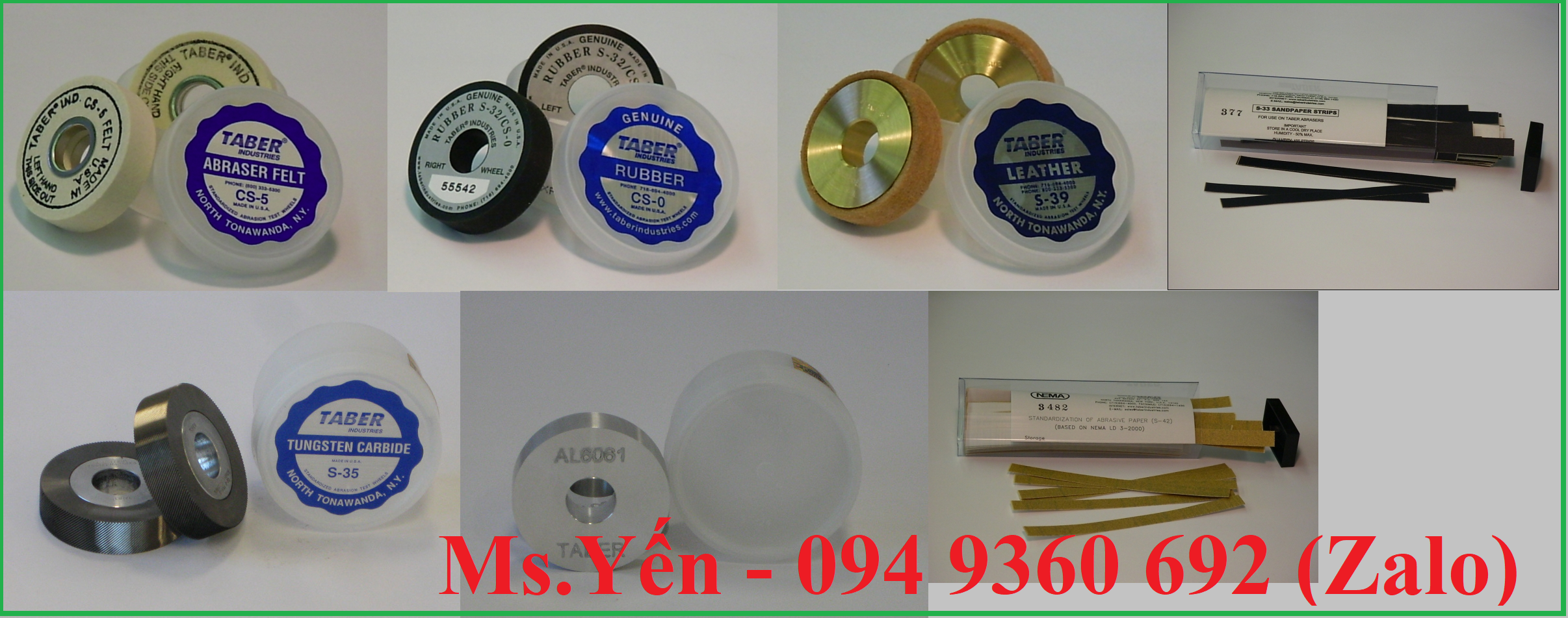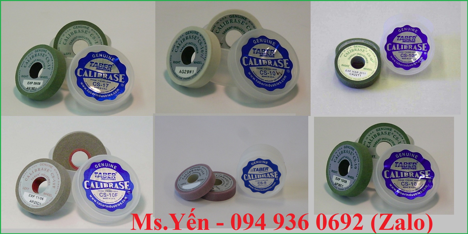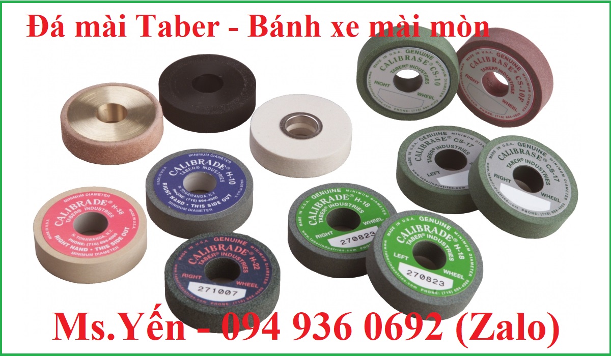 - Hãng Taber của Mỹ cung cấp các bánh xe mài mòn hay còn gọi là đá mài mòn tiêu chuẩn. Chúng được thiết kế với nhiều hình dạng khác nhau để ứng dụng cho nhiều sản phẩm khác nhau.