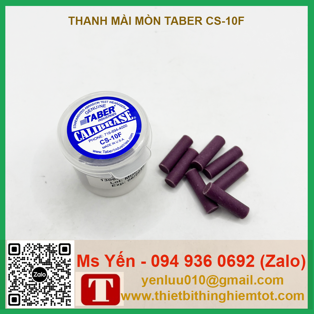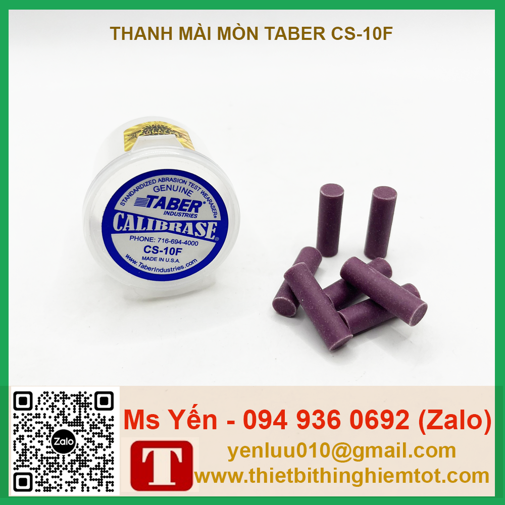 – Thanh mài mòn Cs-10F hãng Taber được sử dụng cho máy mài mòn Linear, giúp kiểm tra độ mài mòn của sản phẩm nhắm đánh giá chất lượng và bảo quản sản phẩm một cách tốt nhất.